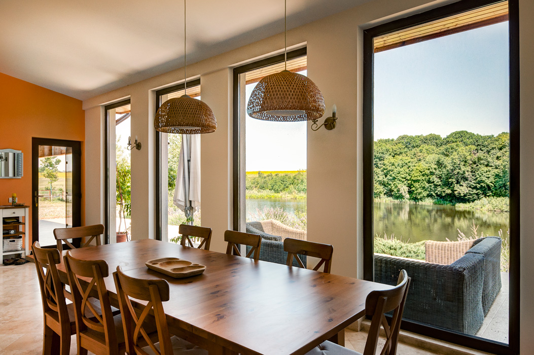 Another aspect that involved limitations but in a totally different sense was the setting - a beautiful place near a lake, surrounded by wild vegetation - and our challenge was to integrate the house while emphasizing the view.